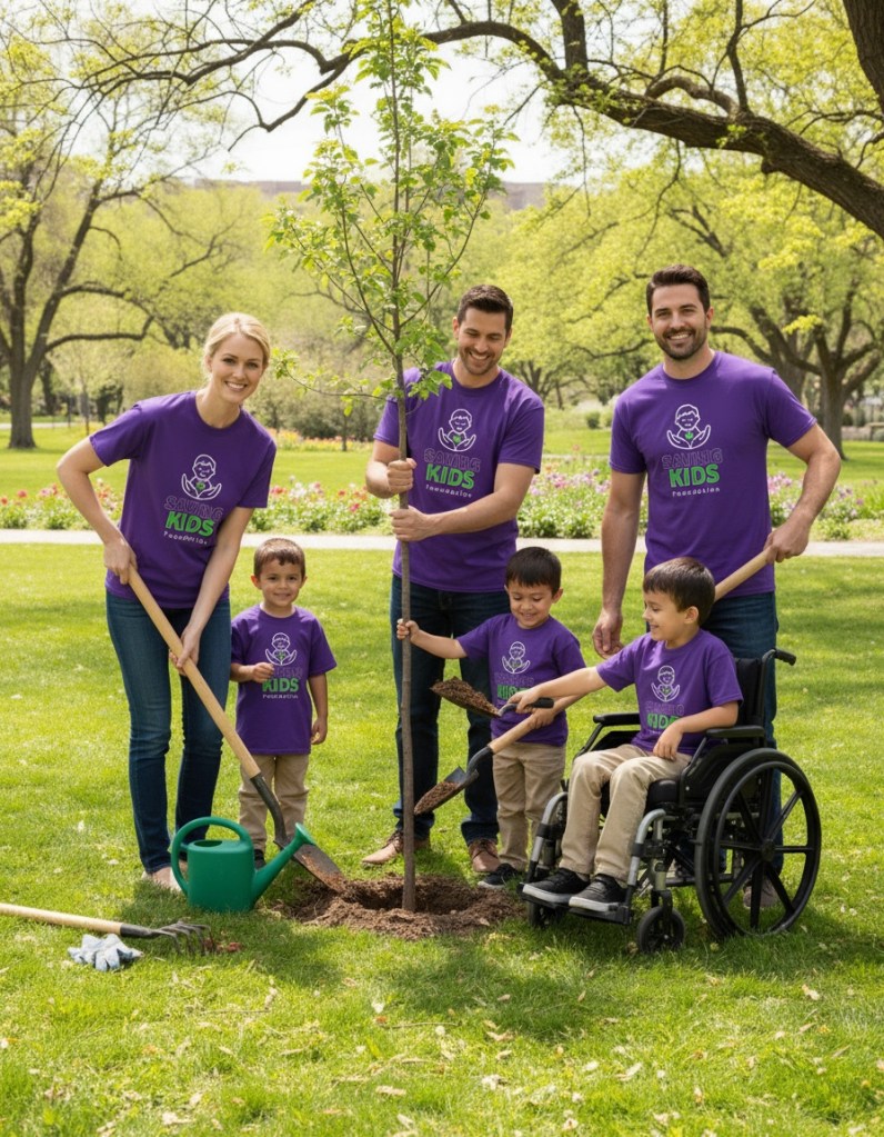 At Saving Kids Foundation, we believe that every tree planted is a symbol of growth, inclusion, and shared commitment. Through our “Planting Hope in Community” events, families, volunteers, and supporters come together to restore nature and raise awareness for children with mobility challenges.